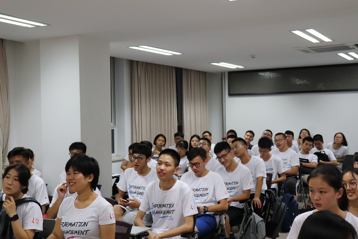 在结束军训动员会后,新生同学们通过自我介绍相互熟悉,分享自己近期经历的趣事,介绍家乡的风土人情。开学第一天,新生同学们忙碌而又充实地初次体会了北大与信管。接下来在等待同学们的,除了丰富多彩的迎新活动,还有值得期待、充满悬念的四年北大生活!