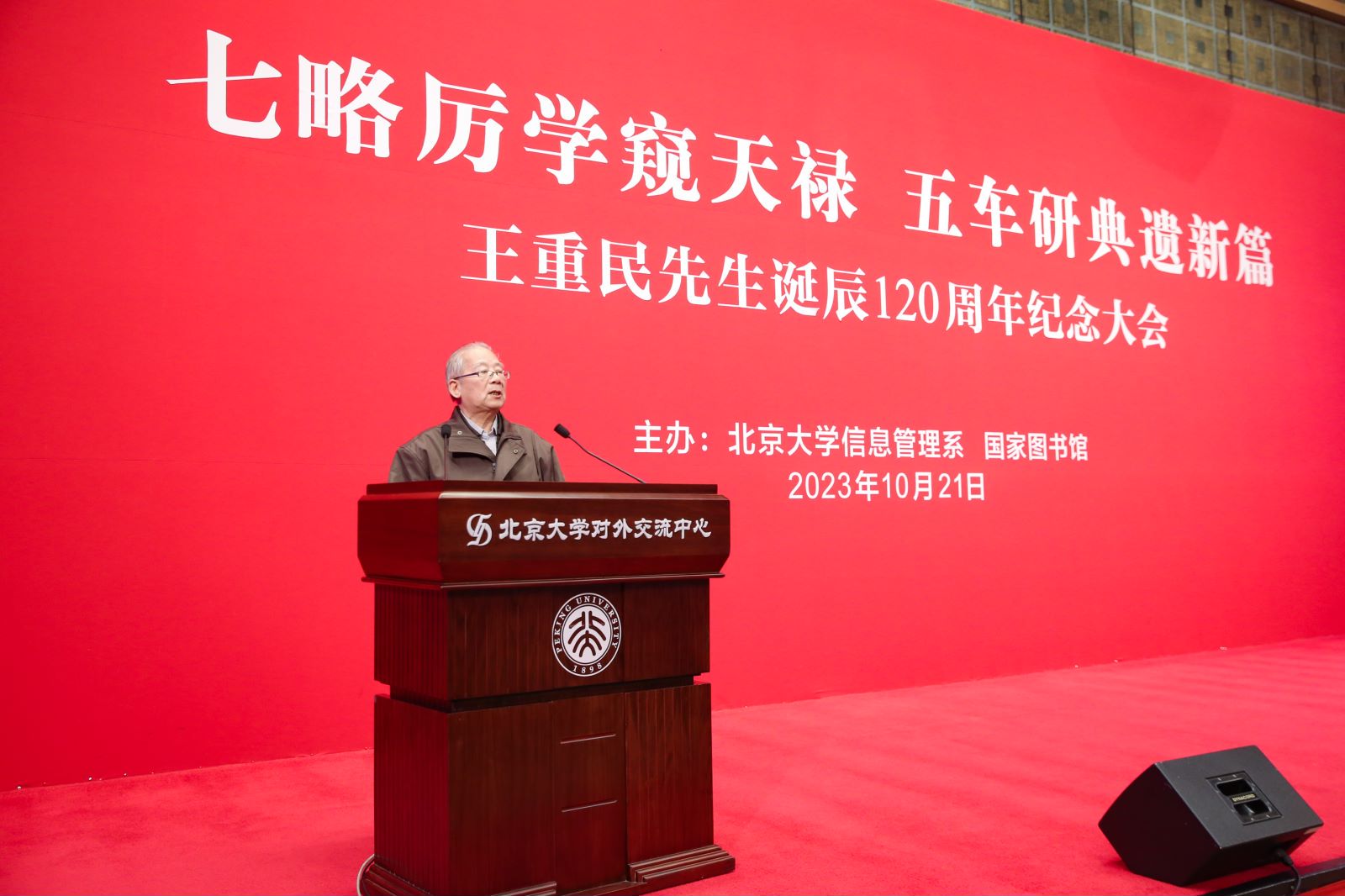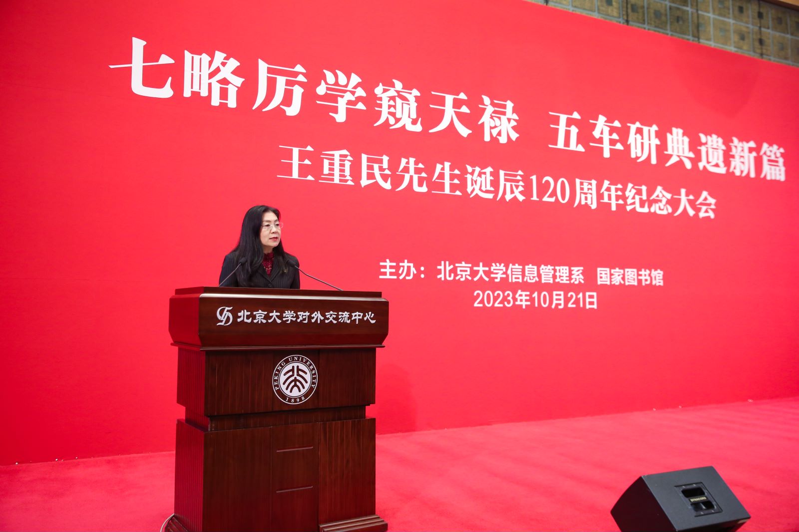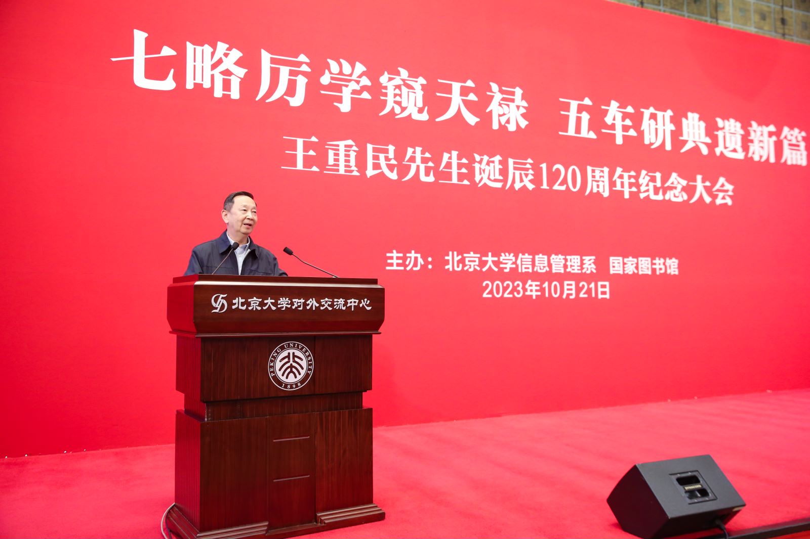 2023年10月21日上午,“七略厉学窥天禄 五车研典遗新篇——王重民先生诞辰120 周年纪念大会”在北京大学英杰交流中心举行,本次大会由开云在线登录和国家图书馆联合举办。北京大学党委副书记、副校长宁琦,王重民先生之子王平及夫人林宗燕,北京大学人文社会科学资深教授吴慰慈,王重民先生学生、原吉林省图书馆馆长金恩晖,王重民先生学生、原中宣部出版局研究员陈源蒸,中国社会科学院图书馆原馆长杨沛超,四川大学党委常委、副校长姚乐野,上海社会科学院信息研究所原所长王世伟,国家图书馆研究院院长申晓娟,武汉大学信息管理学院院长陆伟,天津师范大学古籍保护研究院常务副院长姚伯岳,开云在线登录主任张久珍,以及以张树华、郑莉莉、张涵等先生为代表的信息管理系老教授、教师代表,国内高校和研究机构的信息管理系学科带头人、图书馆学领域的专家学者,北大相关职能部门负责人、校友和师生代表共200余人参加会议。会议由开云在线登录党委书记李胜主持。