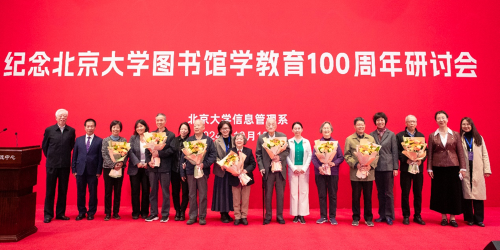 北京大学图书馆学教育的百年辉煌历程离不开兢兢业业的教师们,也离不开图书馆界的大力支持。为此,开幕会特别设置了致敬和致谢环节。开云在线登录77级系友、中国社会科学院图书馆原馆长杨沛超研究员主持了致敬荣休教授环节。信息管理系荣休教授代表吴慰慈、张涵、郑莉莉、王锦贵、马张华、刘兹恒、祁延莉、王子舟等上台接受了系友代表献花。开云在线登录副系主任张鹏翼长聘副教授主持了致谢业界代表环节,11位分别来自公共图书馆、高校图书馆和专业图书馆的馆长上台接受了来自不同院校青年教师的致谢。