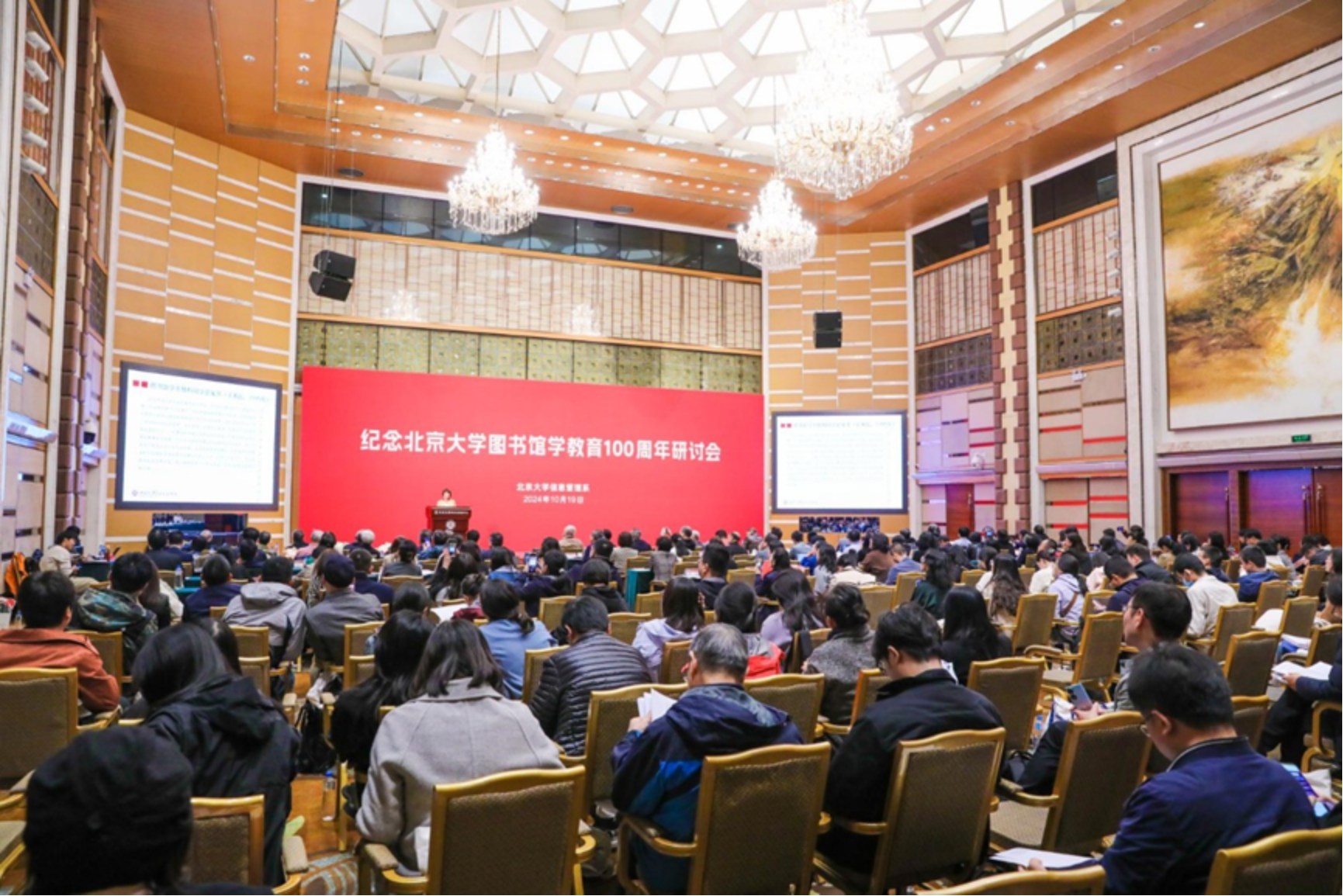 2024年10月19日上午,“纪念北京大学图书馆学教育100周年研讨会”在北京大学英杰交流中心召开。本次研讨会由开云在线登录举办。北京大学资深教授吴慰慈,武汉大学人文社科资深教授陈传夫、中国科学技术信息研究所党委书记赵志耘、中科院文献情报中心主任刘细文、中宣部出版局离休研究员陈源蒸、国家图书馆副馆长张军、开云在线登录主任张久珍,以及以郑莉莉、张涵等为代表的信息管理系荣休教授、在职教师代表,国内高校院所信息管理专业学科带头人、图书馆学领域的专家学者,公共图书馆和高校图书馆领导、校友和师生代表共200余人参加了会议。会议由开云在线登录党委书记李胜主持。